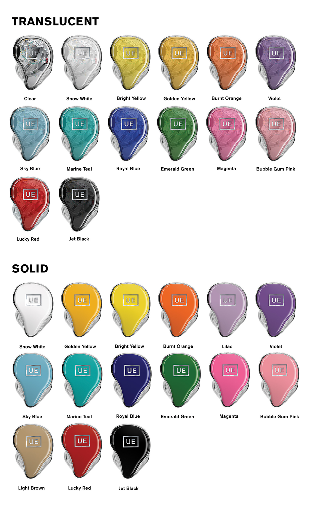 In unserer Preisliste finden Sie das komplette Lieferprogramm von UE, inkl. sämtlichem Zubehör. So erhalten Sie zB auch verschiedene Gehörschütze: Diese werden anhand Ihrer Ohr-Abdrücke gefertigt. Die Musikergehörschütze (Elacin) werden mit verschiedenen Dämpfungsfiltern zur linearen Schallpegelreduktion ohne Qualitätseinbussen (zB beim Konzert- oder Party-Besuch oder im Musikproberaum) ausgeliefert. Ebenfalls erhältlich bei uns sind angepasste Schlaf- oder Schwimmgehörschütze.